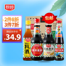 厨邦 酱油 820ml+淡盐酱油820ml+金装渔女蚝油490g+葱姜汁料酒500ml 调味品组合 小箱装