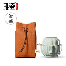 雅瓷汝窑便携茶具小套懒人旅行办公室茶具一壶一杯快客杯汝瓷小南瓜开片可养礼盒装