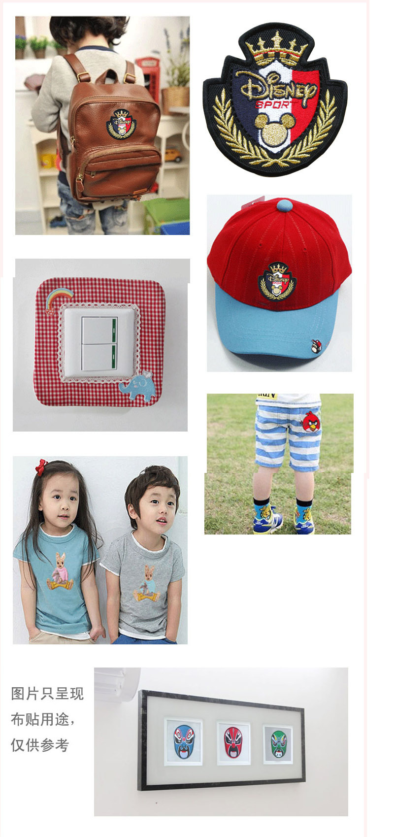我厂专业生产各种花类,卡通,动物等各种标志的布贴。