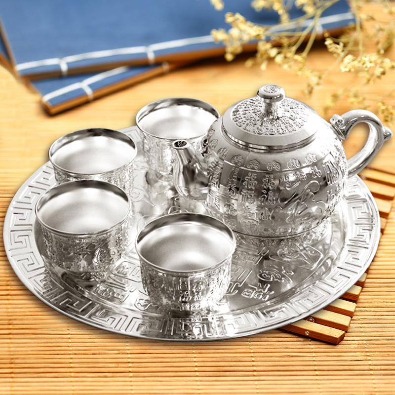 百福茶具银壶工艺品 银壶银杯银盘4+1套装家用吉祥物高端摆饰礼品¥66.7立即购买