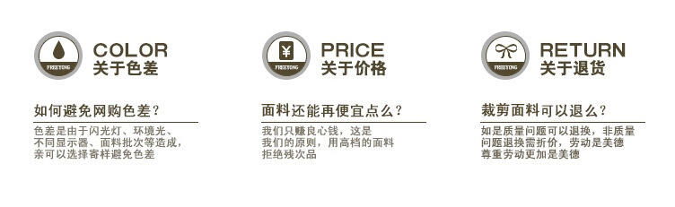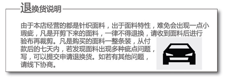 4:所有货物一经开裁或深加工,一律不予退换,敬请留意!