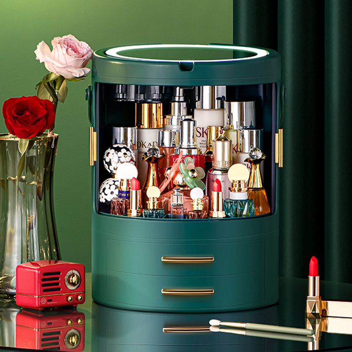 LED镜子一体桌面 化妆品收纳盒 大容量护肤品梳妆台置物架 化妆盒