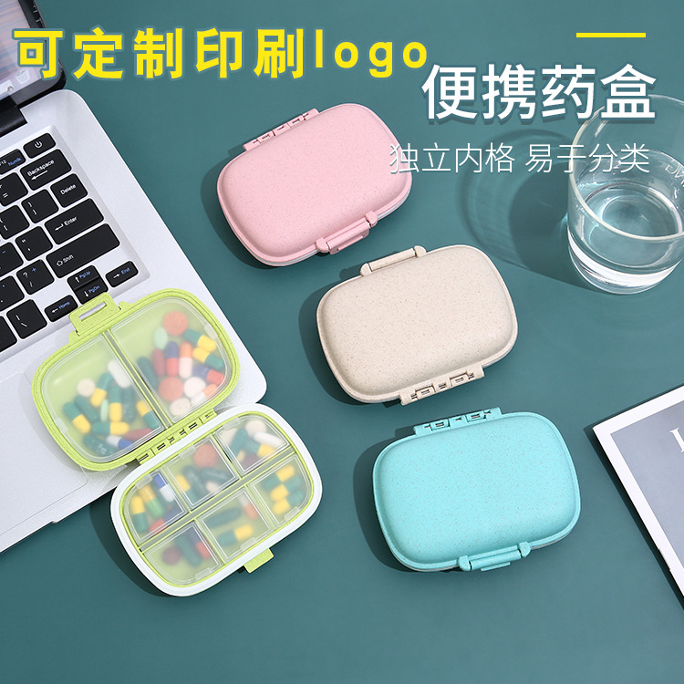 便携式迷你分装小药盒 药丸药片8格双层密封大容量收纳盒印logo