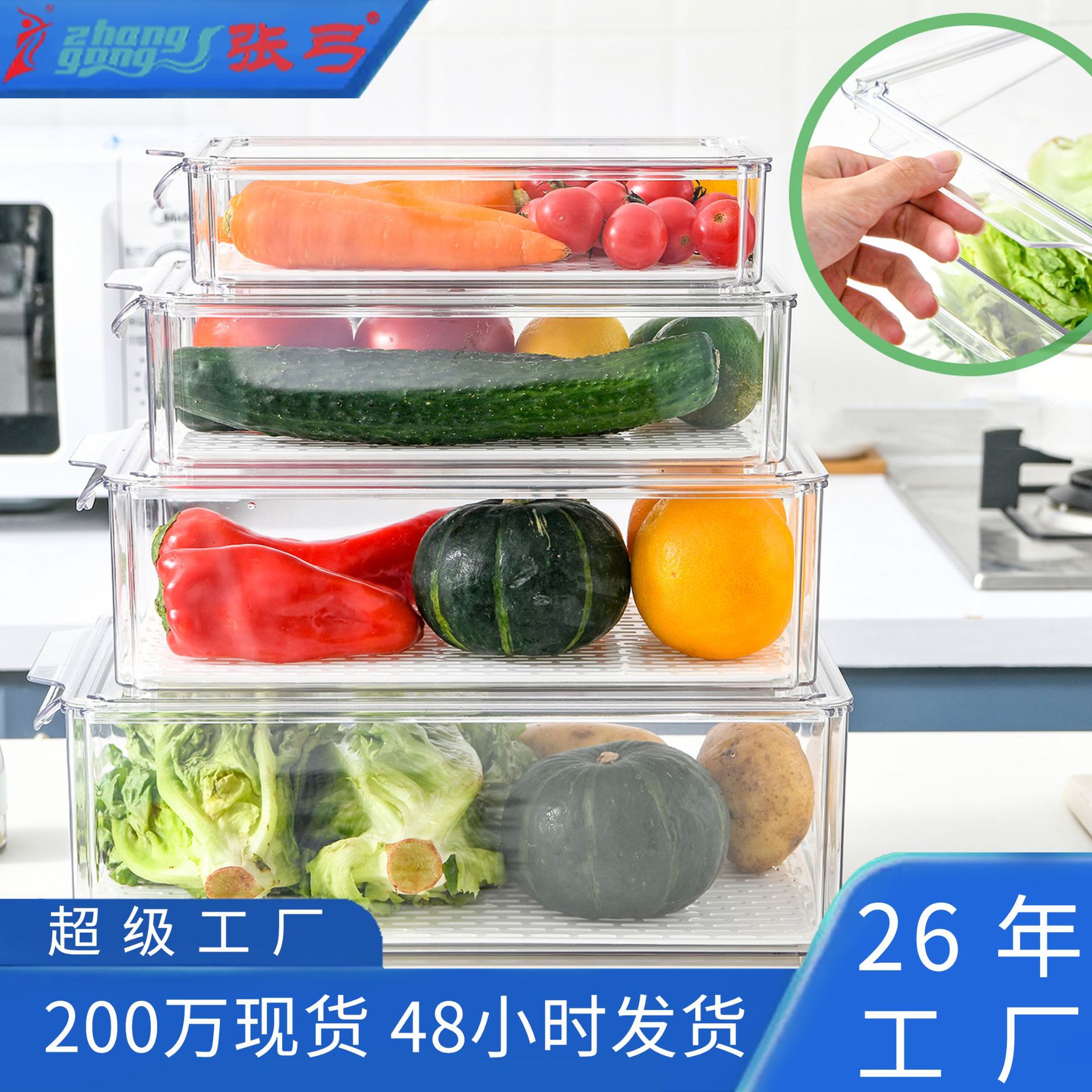 张弓沥水保鲜盒 新款食品冷冻冰箱收纳盒 厂家塑料透明冰箱收纳盒