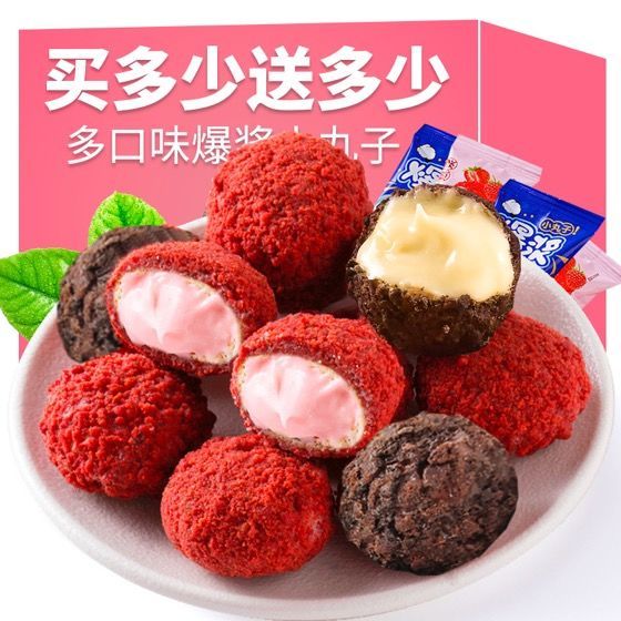 【买50包送50包】草莓爆浆曲奇小丸子奶油夹心巧克力饼干零食整箱