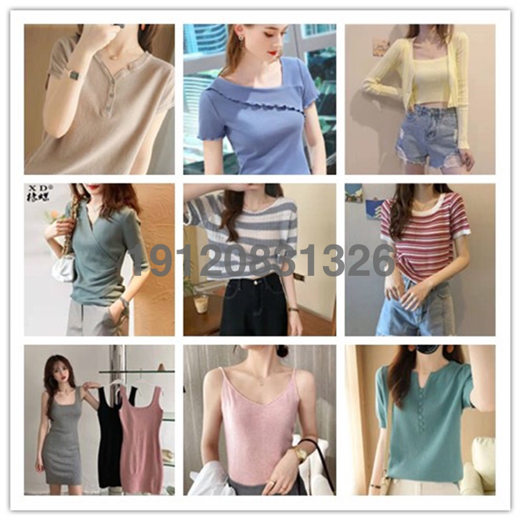 外贸夏新款短袖女韩版时尚短款针织上衣女装短袖T恤库存地摊货源