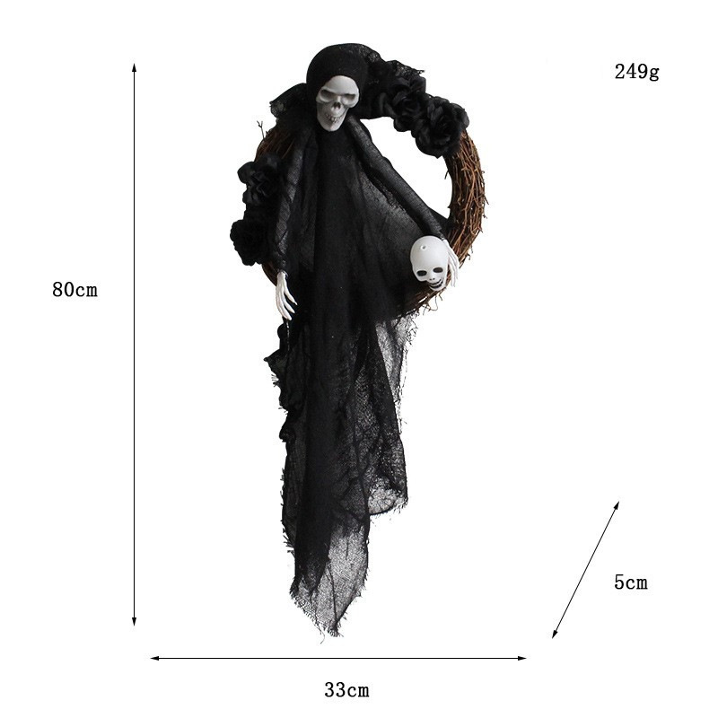 跨境产品 万圣节花环黑白花环节日花环黑白幽灵花环鬼节派对花环