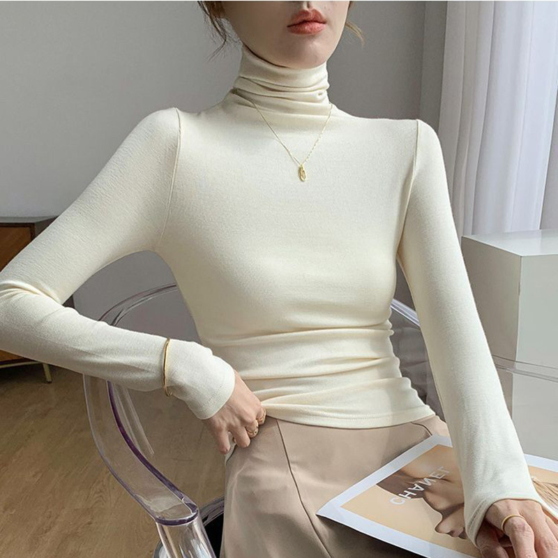 高领打底衫女内搭薄叠穿紧身洋气2022新款秋冬春长袖韩版超火ins