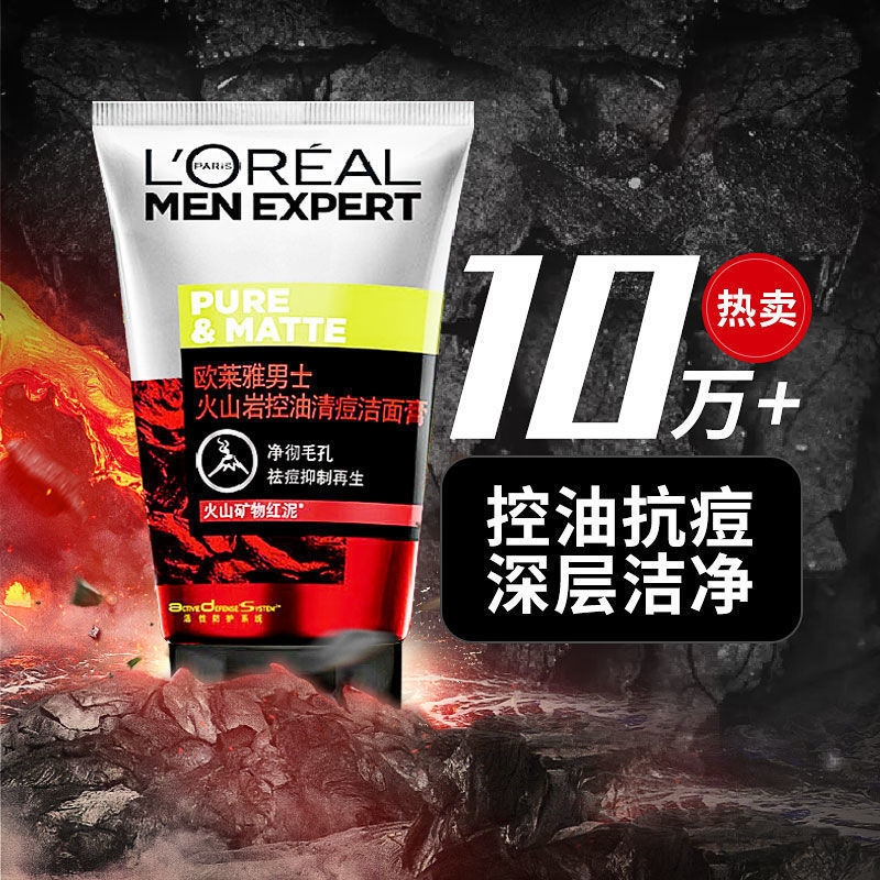 莱雅男士专用洗面奶火山岩控油痘去黑头深层清洁除螨虫洁面乳