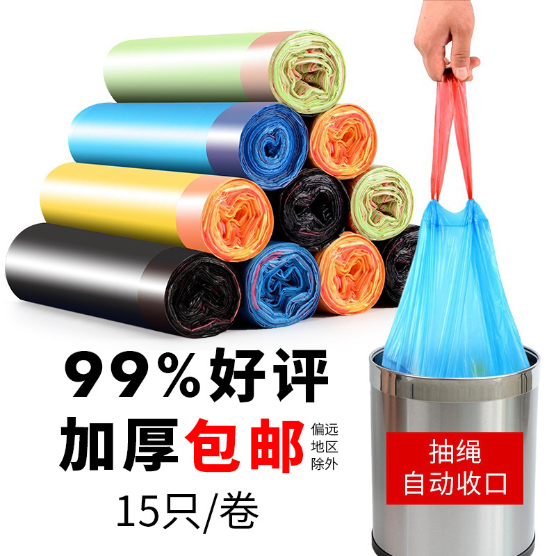 抽绳垃圾袋家用加厚手提一次性黑色塑料袋自动收口穿绳垃圾袋批发