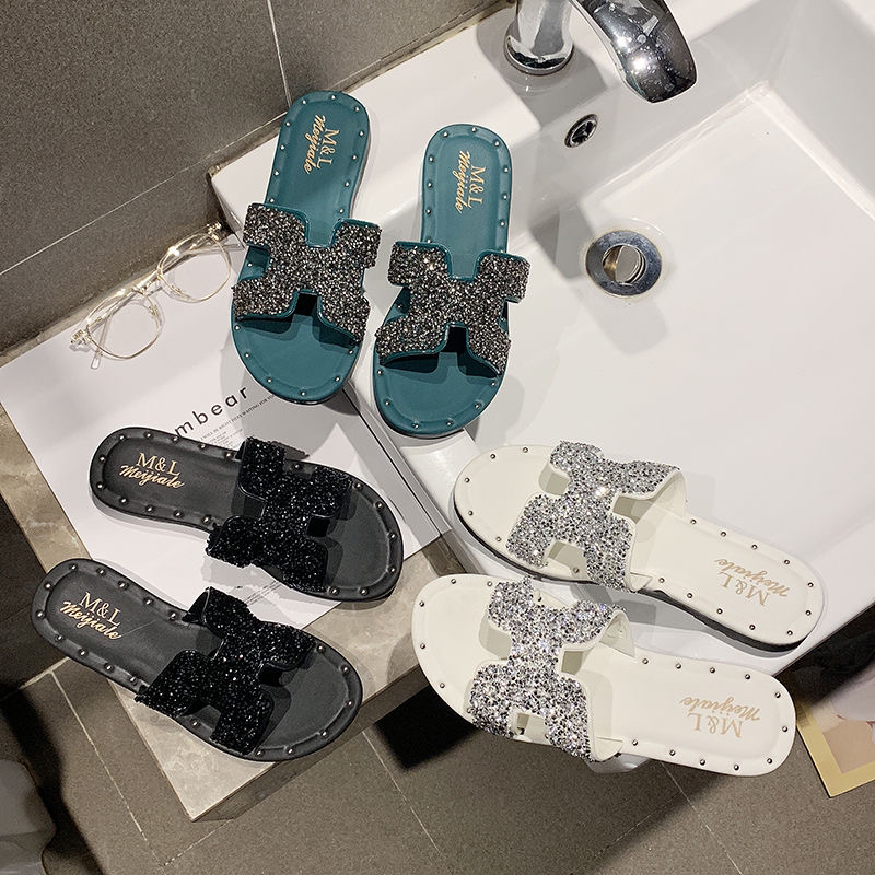 跨境新款时尚水钻外穿沙滩女鞋夏季凉拖鞋韩版百搭拖鞋女学生平底