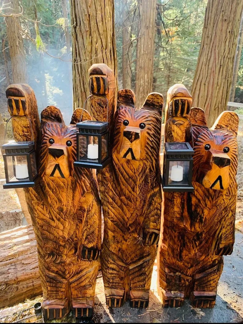 跨境新款 Cedar carved Bear with solar lantern 雕刻熊太阳能灯