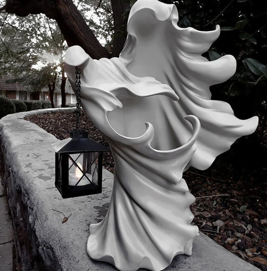 2021新款万圣节女巫树脂提灯摆件带灯笼的地狱使者幽灯里的残烛梦