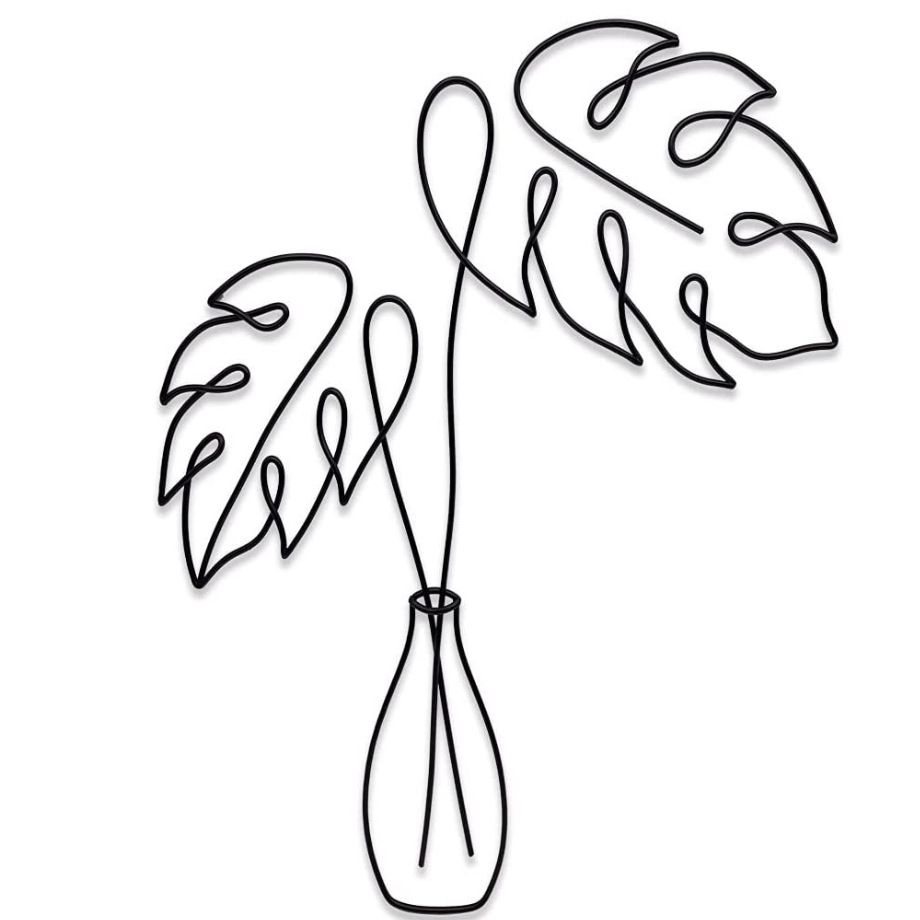 植物金属线条家庭装饰墙壁挂饰简约树叶花瓶墙艺术绘画墙上摆件