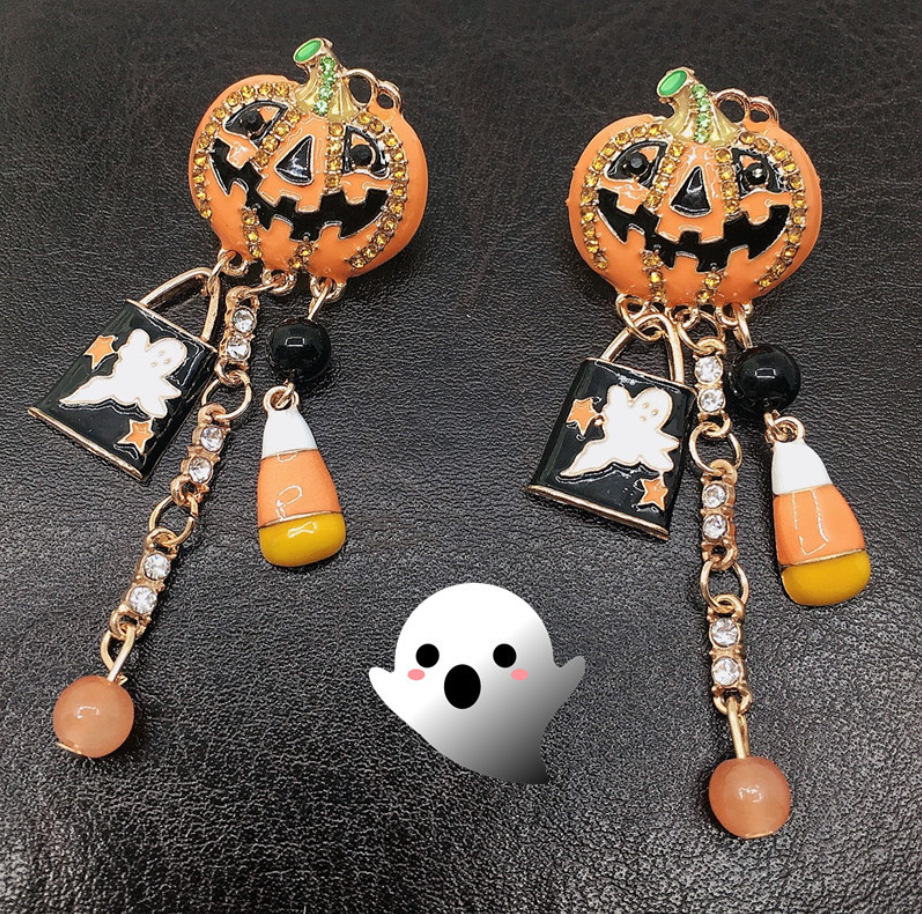新款欧美创意南瓜滴油搞怪耳环 万圣节鬼流苏长款镶钻可爱耳饰