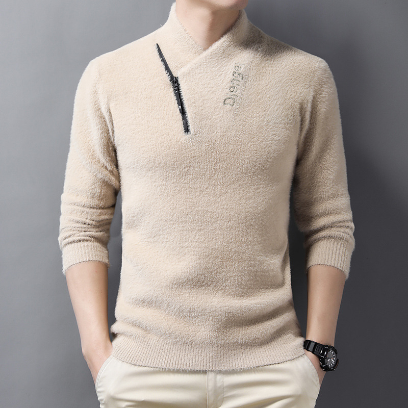 男士加厚水貂绒毛衣男潮流保暖内搭冬季品质大码拉链半高领针织衫
