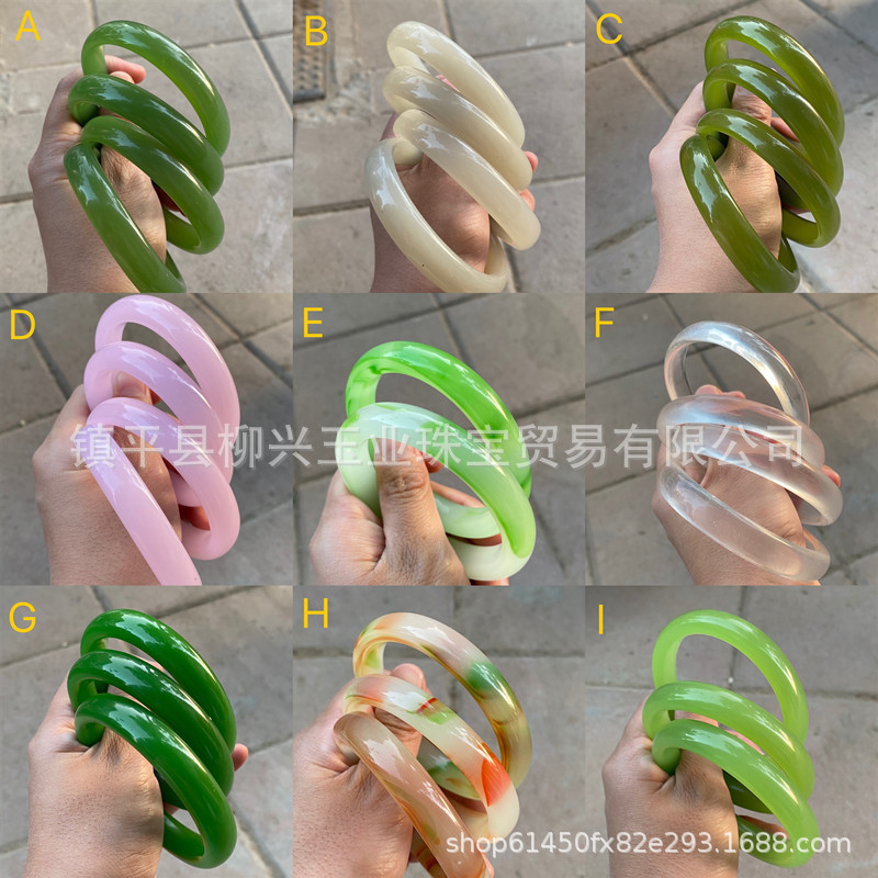 厂家批发和田碧玉仿玉石手镯女翡翠色琉璃玉镯子地摊会销抵债玉器