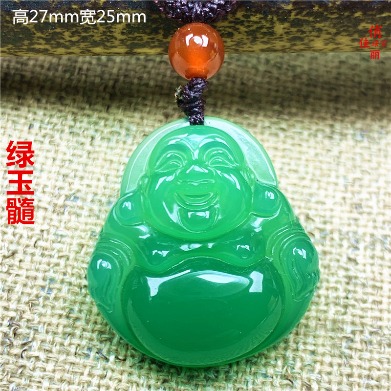 厂家批发玉石绿玛瑙绿玉髓吊坠挂件大肚小佛公园菩萨公玉器礼品