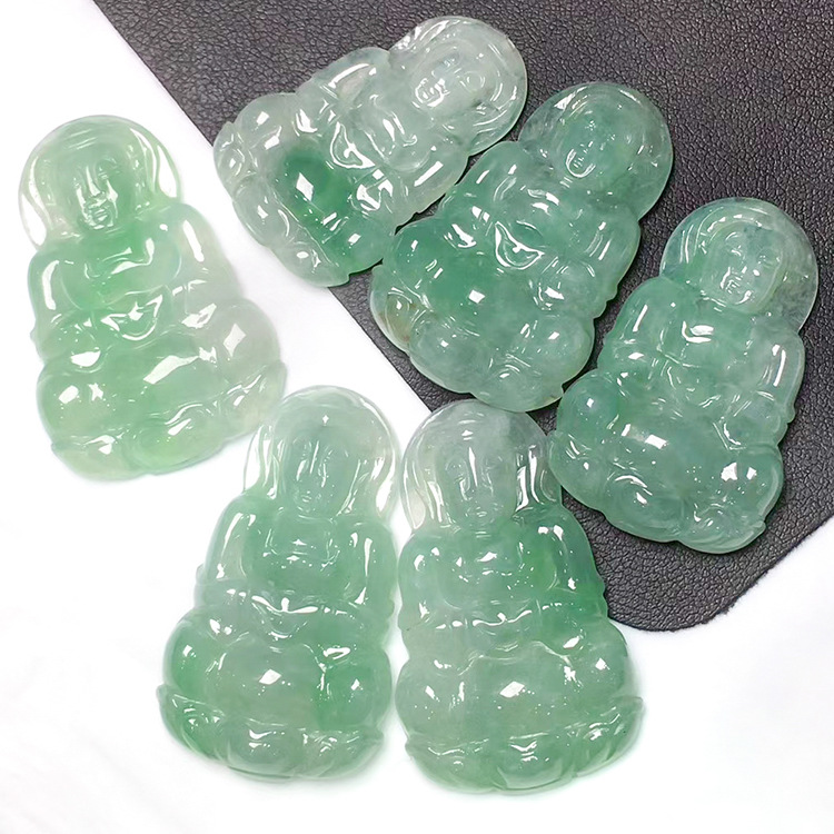 直播货源A货缅甸天然翡翠玉佛玉吊坠 玉观音玉吊坠玉项链女带证书