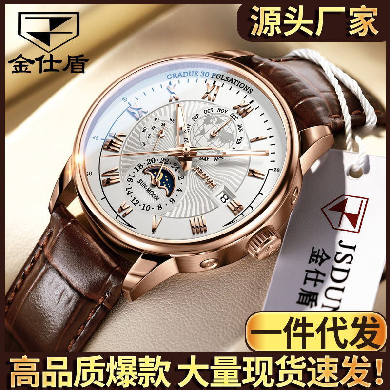 金仕盾品牌手表全自动机械表三眼六针手表时尚潮流男士手表男表
