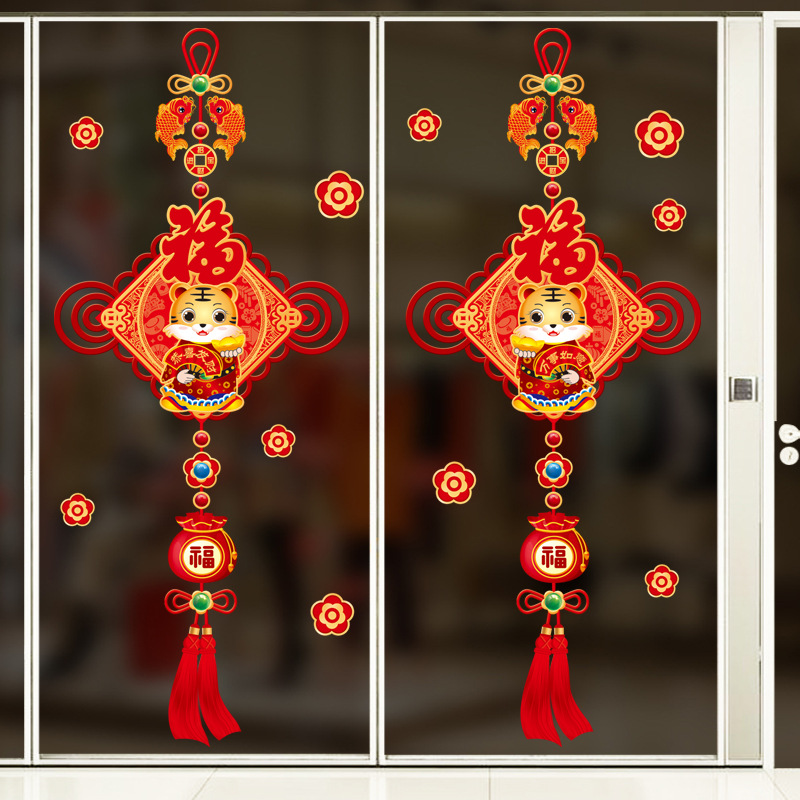川豪2022新年春装饰布置春节过年门贴画元旦商场店铺装饰自粘贴画