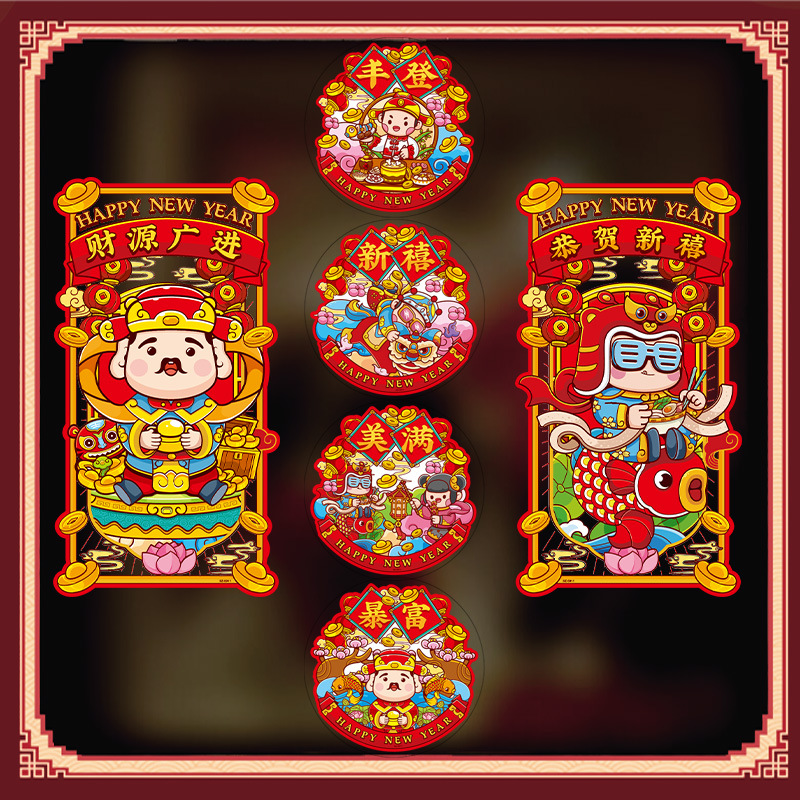 2022虎年新年生肖财神立体对贴福字窗花门贴墙贴春节过年装饰用品